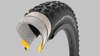 Die HardWALL-Konstruktion verfügt über einen von Wulst zu Wulst laufenden Schutz und einen harten Gummieinsatz über der Wulst für zusätzliche Stabilität bei aggressivem Fahrstil. Die in die Karkasse eingelassenen Verstärkungen erhöhen die strukturelle Zuverlässigkeit und sorgen für eine bessere Abstützung bei niedrigeren Reifendrücken.